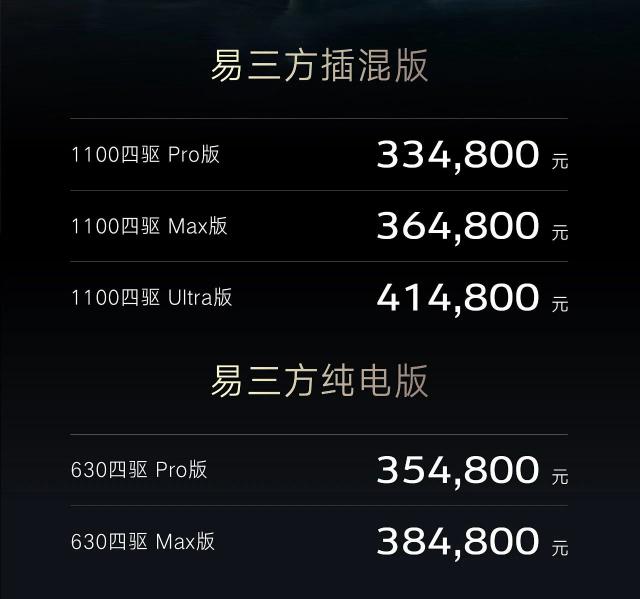 在配置版本的选择上,除了纯电动版比同等梯度的插电式混合动力版本更贵之外, 2 万元,Pro 版升级 Max 版价格是 3 万元,Max 版升级 Ultra 版价格是 5 一万元。就配置而言,入门。 Pro 该车型即标配易三方技术,支持蟹行方式,圆规调头,灵活转弯等功能。