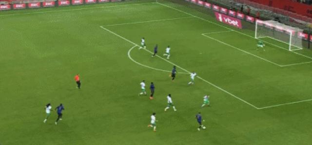 第 4 分钟,阿里 - 在肖边路低平球传中,巴图宾西卡自摆乌龙,尼斯 1-0 领先。