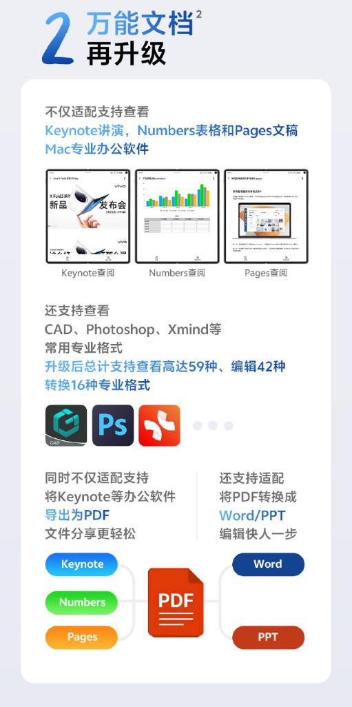 据悉,vivo X Fold3 在最近的一次更新中,手机增加了一个重要的新功能,那就是支持查看和编辑更多类型的专业文件。这意味着你可以更方便地在手机上查看和处理它。 Mac 使用特定软件在计算机上打开的文档,例如 Keynote 讲演、Numbers 表格和 Pages 文稿。