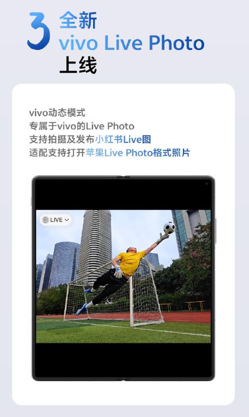 同时,vivo 为 X Fold3 推出了一系列手机 vivo Live Photo 功能,这个创新用户可以通过动态模式捕捉照片,并直接与小红书平台分享这些动态图片。此外,它还支持打开和查看苹果 Live Photo 形式,从而增强了顾客拍照感受和社交分享的便利性。