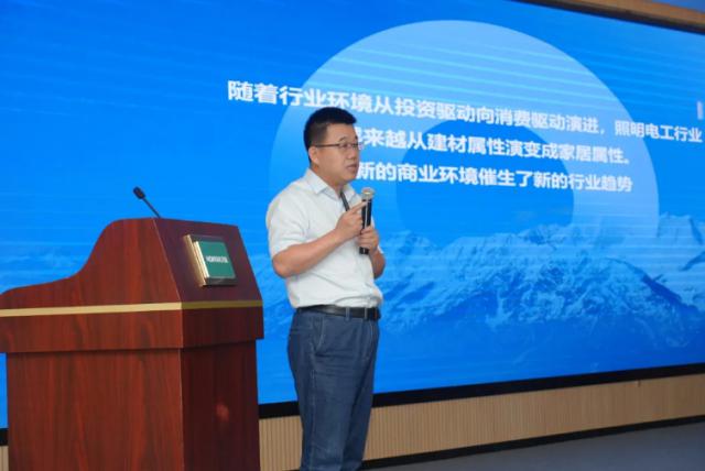 《新战略:新环境新趋势下的鸿雁布局》主题演讲由鸿雁总裁王米成进行。他指出过去 20 2008年,随着城市化和房地产投资的东风,照明电工行业经历了显著的增长和发展。目前,经济低迷和房地产低迷导致行业面临许多困难和挑战,行业环境从投资驱动向消费驱动转变,同时催生了新的行业趋势。