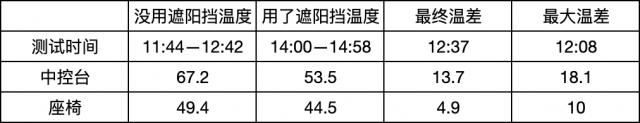 1. 中央控制台温度,曝光会加速老化,能探索遮阳挡对内饰的保护能力。