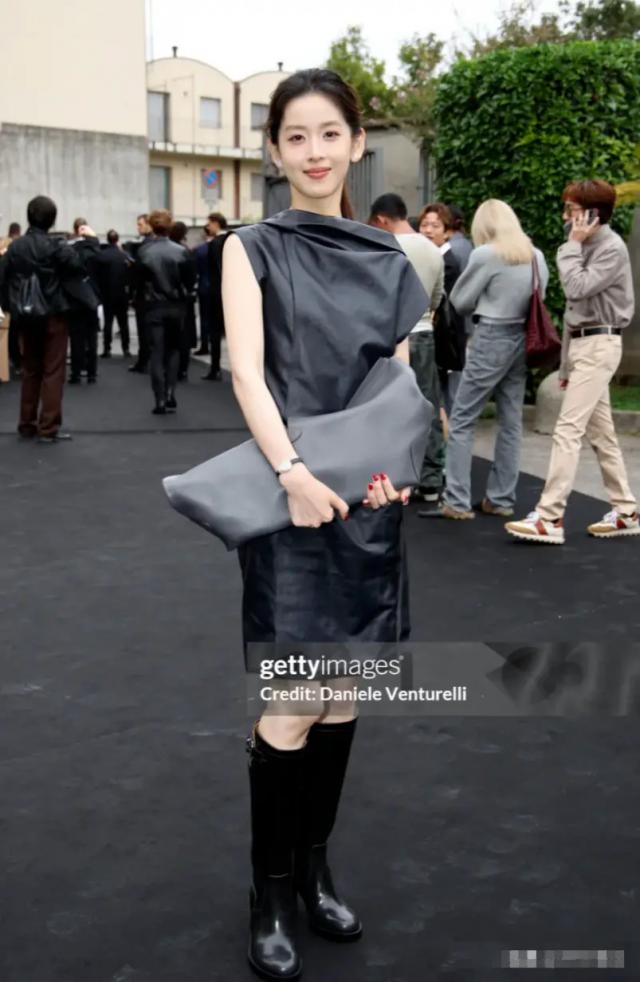 章泽天参加了米兰时装展,坐在小明星旁边有点尴尬,但是皮肤状况好到爆炸。