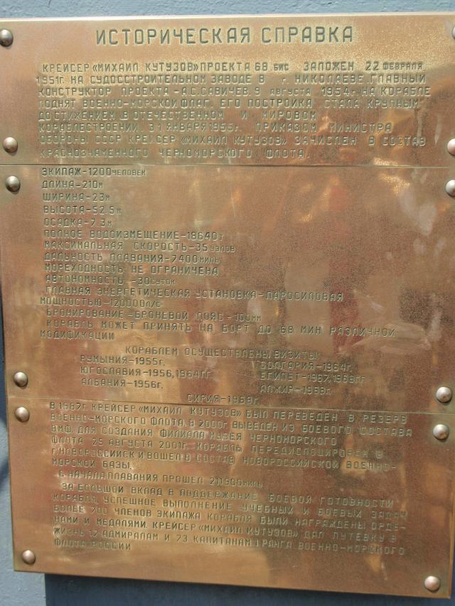 2002 年 7 月 28 日,也就是海军日,这艘巡洋舰正式向英雄城市新罗西斯克开放,作为博物馆。