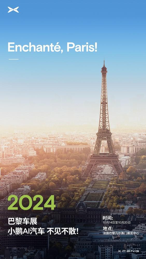 参加2024巴黎车展的小鹏汽车官宣。 小鹏P7 或首发亮相