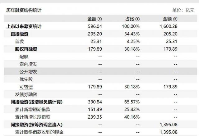 Wind 数据显示,自上市以来,天合光能募集的资金金额为 596 其中,资本市场通过亿元 IPO 发行可转债的融资金额为 205.2 向金融机构间接融资金额为亿元 390.84 亿元。