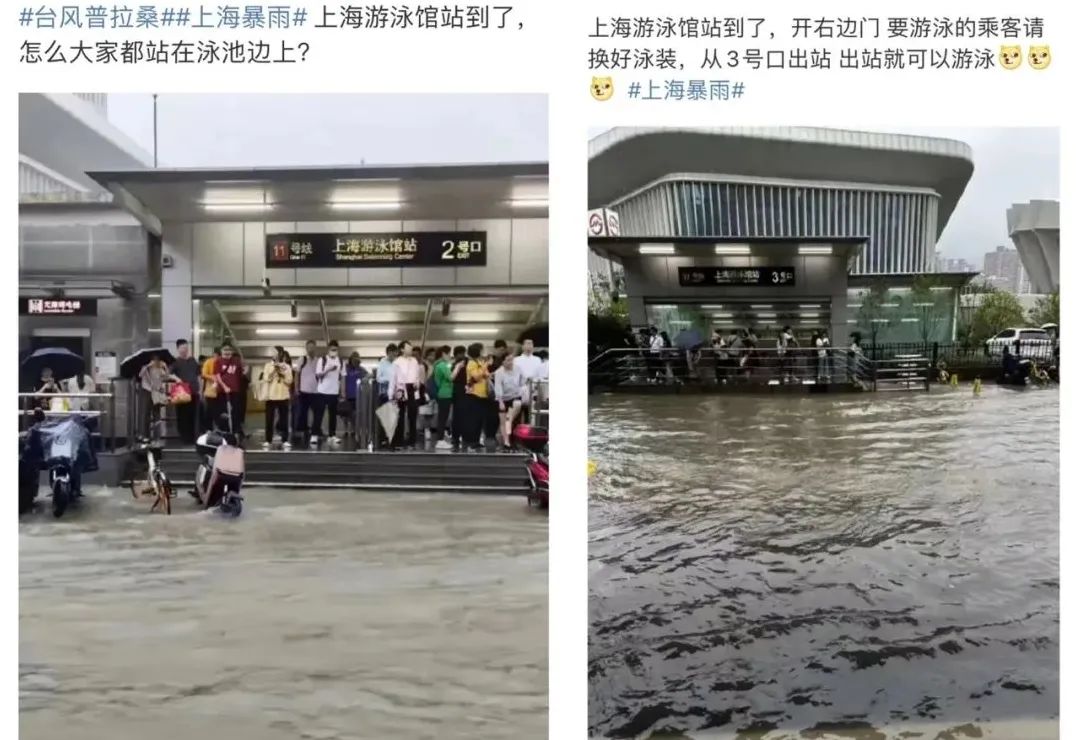 9月20日上午,网上广泛流传着上海游泳池地铁站门口深水存放的照片。有网友调侃:“请注意,上海游泳池真的到了,请有序出站游泳”...连续袭击上海的台风似乎宣告“魔都结界”已经不存在了。