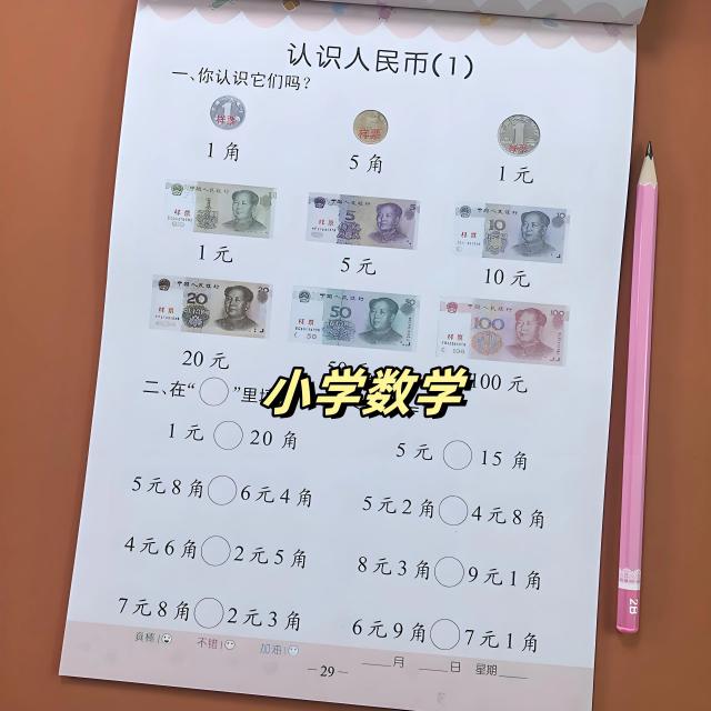 儿童在小学一、二年级学习数学时,教师会教授“认识金钱”这一块的知识,教师会用道具教孩子们“了解金额,如何换取金额?"。