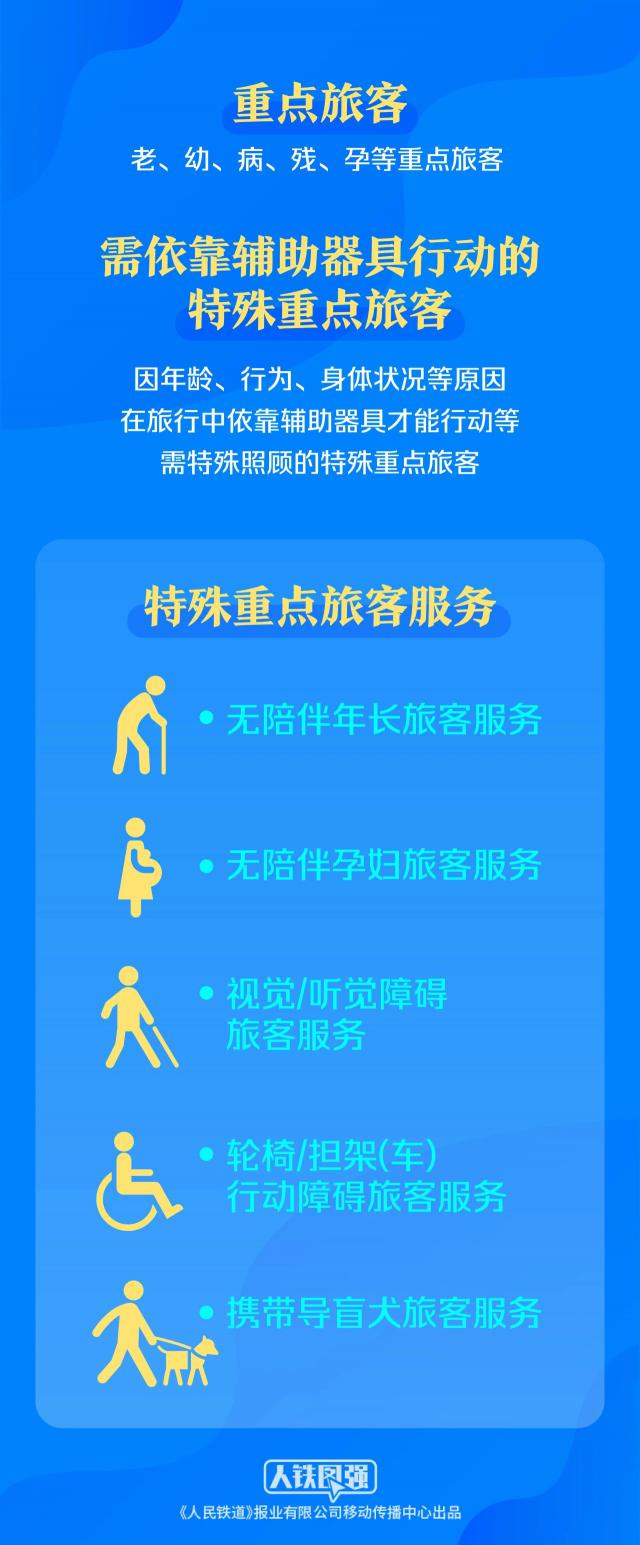 据中国铁路集团介绍,铁路部门已经开始实施针对重点客运服务的新规则,如明确服务对象和范围、明确服务项目和标准、规范预约申请流程等。,从而进一步科学配置资源,规范服务流程,完善相关规则,重点客运出行将更加温馨便捷。详细↓