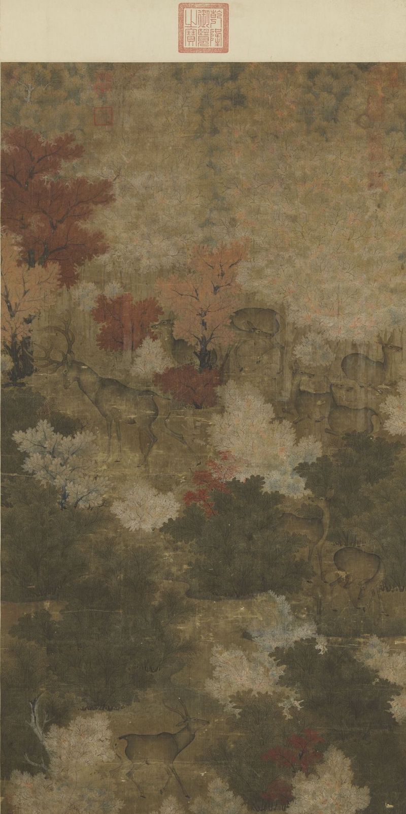 五代 无款 秋林群鹿 轴(局部) 台北故宫博物院藏