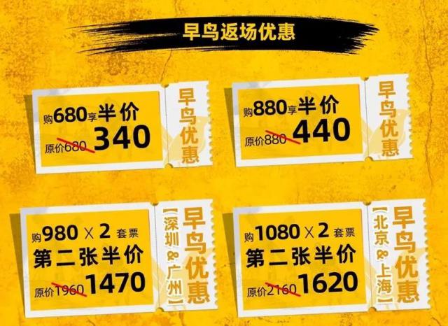 早期鸟类返回专属折扣:880 / 680 单张五折;