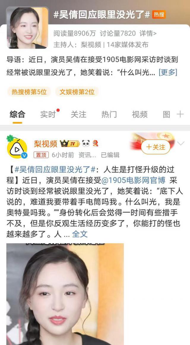 吴倩霸气地回应“眼中无光”,高情商解释显著完善,网友观点各异。