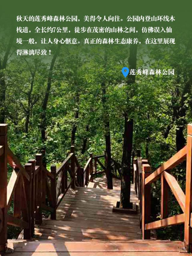 净月潭步行休闲游路线:女神广场→西环潭入口→北普陀寺→水库大坝西→朝夕水岸→黑松林→小森林浴场→景区西门→水上栈道→森林浴场→返回景区西门,全程约。 7.5km。