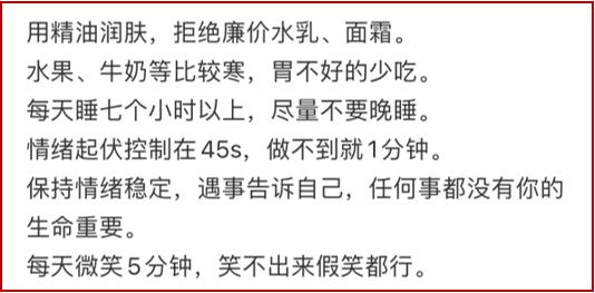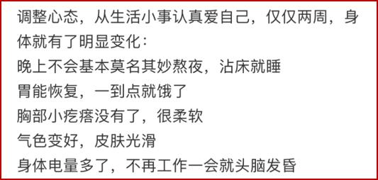 举例来说,现在,大家对外貌、失眠、肠胃、气血、是否感到疲倦。 5 点要求比较大,爆文中,从这些角度来看,自己的变化。