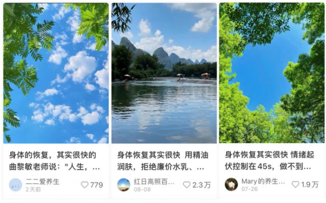 分析健康博主一个多月的内容,我们会发现大部分爆款健康干货都是绿色植物,比如大树杆,茂盛的树冠,或者乡村风景作为封面,这个爆款也是如此。
