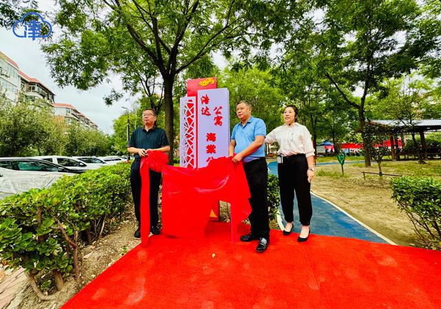天津北方网讯:9 月 20 日上午,改造后的社区“口袋公园”-“海棠公园”正式揭牌,北辰区双环街浩达公寓社区通过社区治理“微更新”行动。