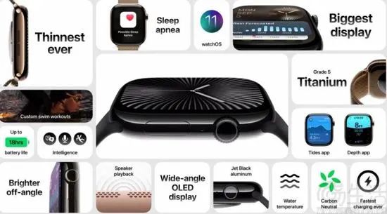 在日前苹果方面举行的秋季新品发布会上,推出了近年来升级幅度最大的智能手表产品Apple Watch Series 10。其搭载SiP10芯片,配备有四核神经网络单元,内置深度计和水温传感器,可记录用户的水上运动轨迹,同时还新增潮汐检测功能,并加入了全新的睡眠呼吸暂停检测能力。除此之外,AirPods Pro 2还将通过固件更新的方式新增听力健康相关功能,并提供临床级助听器模式。
