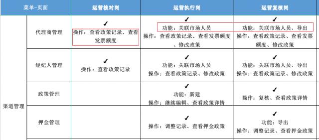 然后,在角色权限功能中 - 在配备新角色时,界面的按键权限可以通过功能、操作两个部分进行检查。