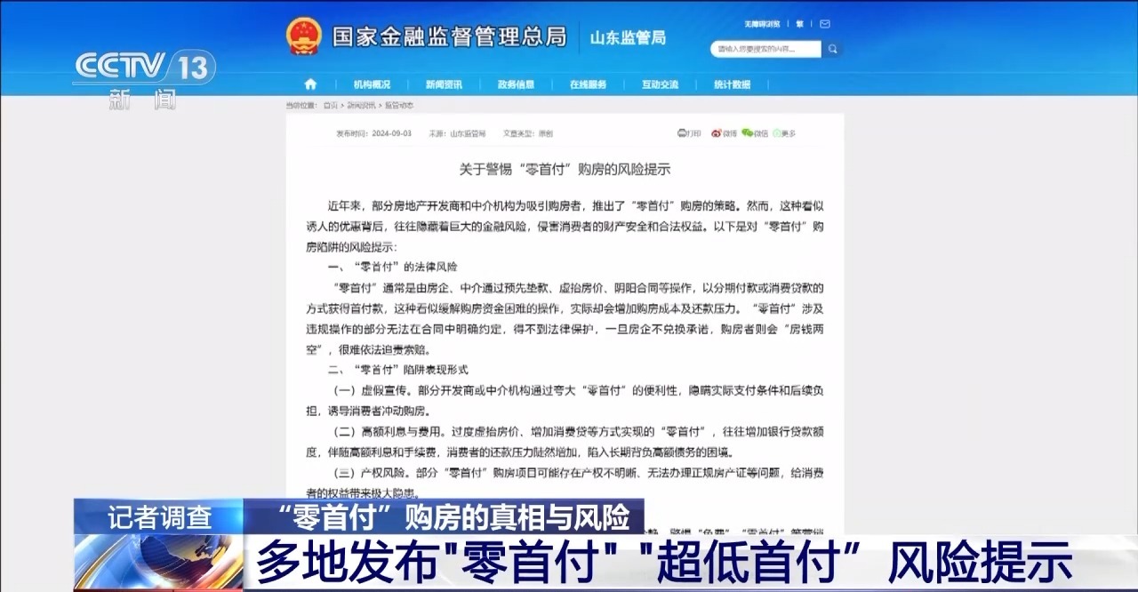 今年,随着房地产政策的不断调整和优化,许多房地产开发商和房地产中介机构出台了优惠政策,在一些城市取得了一定的效果。但是记者注意到,近期,一些开发商和中介机构推出了“零首付”、“超低首付”等操作,吸引了买家。针对这种情况,近日,包括郑州、南宁、山东等地相关部门在内的全国多个地方相继发布了风险提示。那“零首付”和“超低首付”到底是怎么回事?