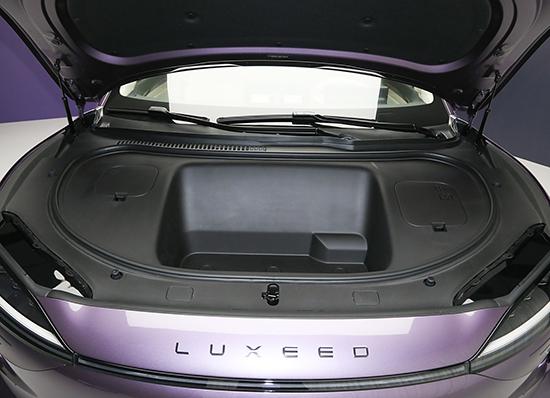 智界 R7 采用与智界 S7 外观设计相似,封闭式前格栅与两侧泪眼大灯相结合,识别度较高。其配置的电吸前备箱容量达到 支持关节双击打开功能,方便日常取放。