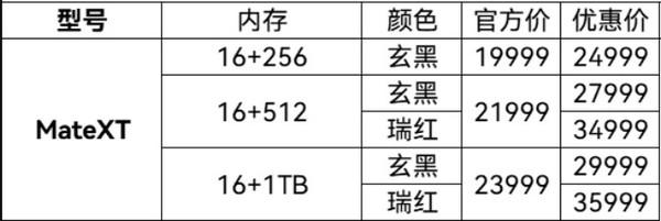 华为被数字博主曝光 Mate XT 三个折叠渠道价格,机器 16GB 256GB 玄黑价格是 24999 元,相应的官方价格为 19999 元,溢价 5000 元;16GB 512GB 玄黑和瑞红的官方价格是 21999 人民币,渠道价分别为 27999 块和 34999 元,看起来红色仍然更有吸引力;16GB 1TB 官方版本价格为 23999 元、玄黑和瑞红的渠道价分别是 29999 块和 35999 人民币,最高溢价来了 12000 元,足以抵得上最新的一部。 iPhone 16 Pro Max。