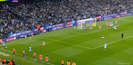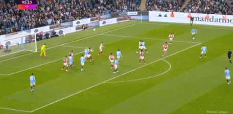 第 90 7 分钟,绝平!斯通斯补射破门在门口乱战,曼城 2-2 十人阿森纳