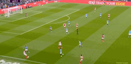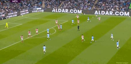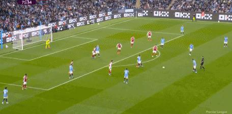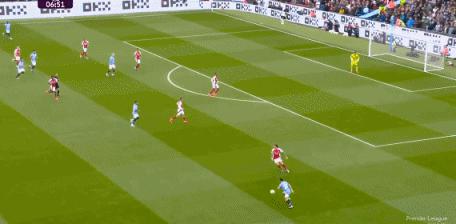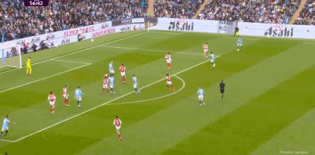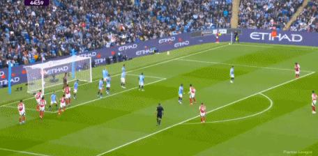 第 45 1 上半场补时阶段,加布里埃尔头球破门,阿森纳。 2-1 曼城