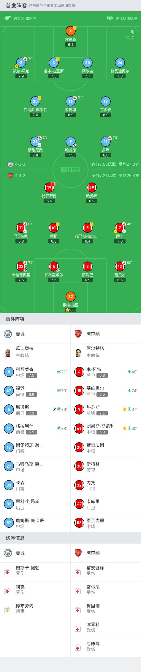 神情节!曼城2-2绝平10人阿森纳 斯通斯读秒绝平特罗萨德染红