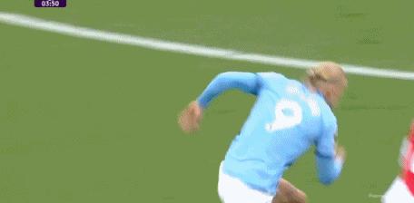 第 4 几分钟,有点硝烟味!哈兰德在争夺头球时放倒萨利巴
