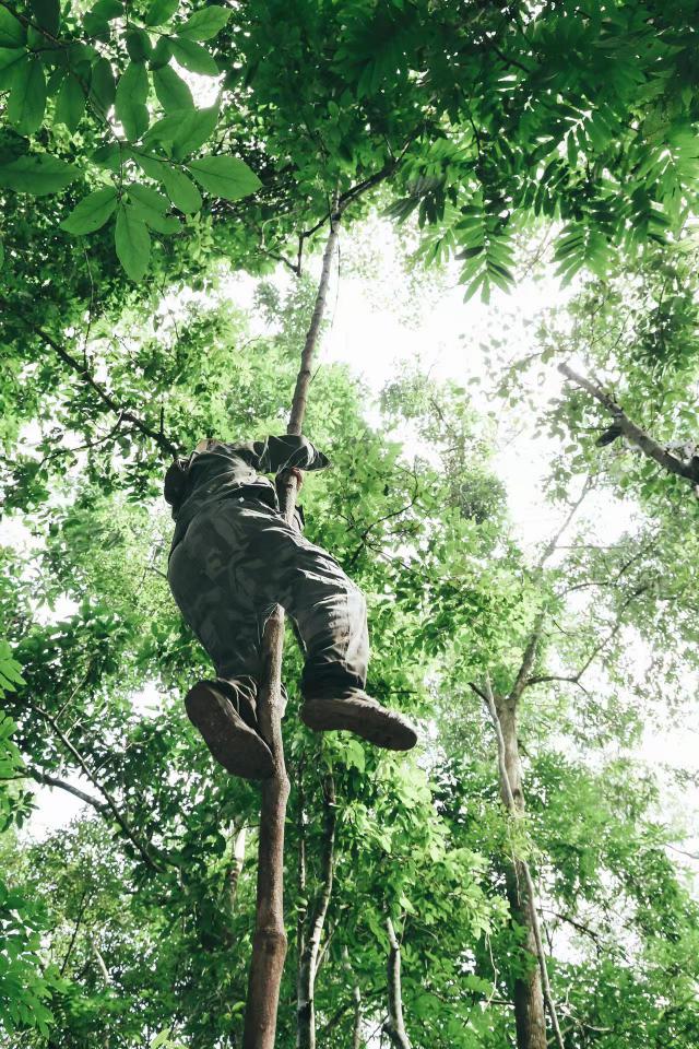 比如上树,包大人不仅步行雨林轻如燕,就连上树,也不停地上树,轻盈地弹跳。