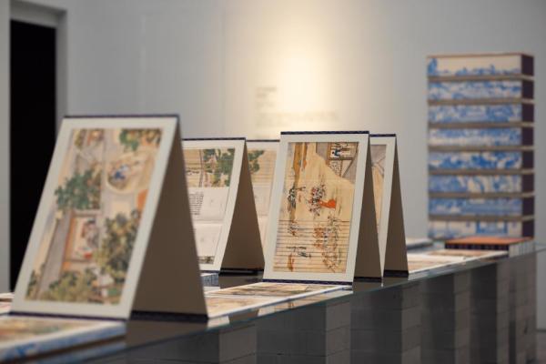在展览现场,观众还可以近距离看到张晓栋的作品经龙装《清·孙温绘程甲本图文藏版红楼梦》。书展开后,每一页内芯都选用龙鳞装,巧妙地连接起来,让观众在阅读过程中体验到一种逐页翻飞的动态美。正如宋代张邦基《墨庄漫录》所描述的那样:“逐叶翻飞,展卷至末,仍然合并成一卷”。阿根廷艺术家阿莱克斯应邀将张晓栋的千页绘画制作成视频,形成另一种艺术表现。