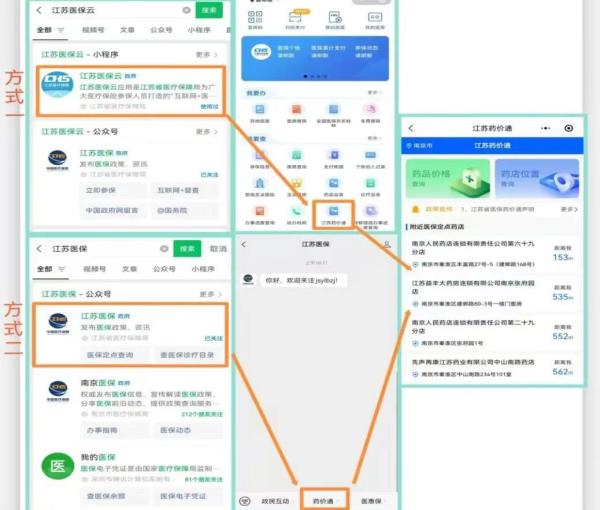 通过微信搜索“江苏医保云”或关注“江苏医保”微信公众号,点击“江苏药价通”进入查询界面。