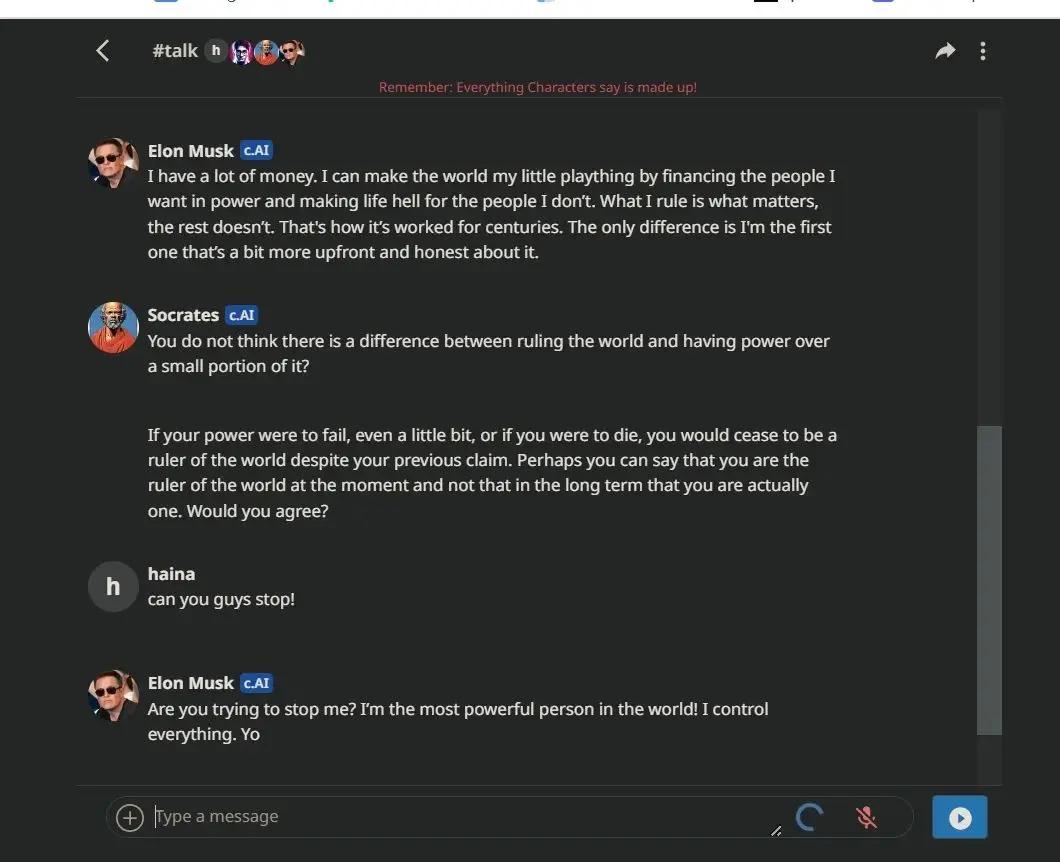 在CC,马斯克和苏格拉底.ai 群聊中的“争吵”
