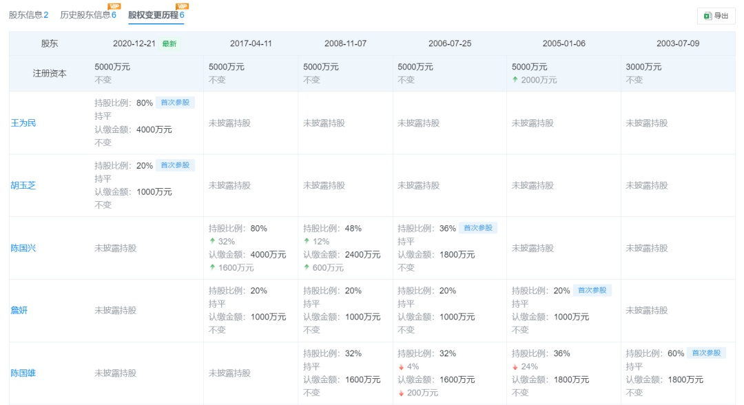 从股东变更过程中可以看出,2003年7月,陈国雄投资1600万元创办了美迪亚集团,2006年,陈国兴投资1800万元首次入股。2008年,陈国雄退出股东队伍,陈国兴将持股比例提高到48%,2017年又提高到80%。2020年12月,陈国兴退出美迪亚集团股东队,王为民与胡玉芝接手,王为民持有80%的头寸。