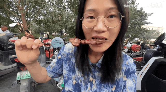 白日刚刚炫耀完水果,天一擦黑,烧烤店又陆续出现。鸭子点了四串大肉串,只花了9元钱,价格仿佛穿越回90年代。