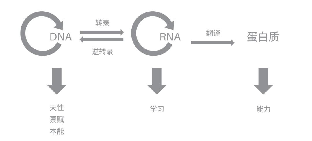 后天学习就像RNA,在人类成长的“中心法则”中起到“翻译”和“逆转录”的作用。学习可以充分发挥自己的天性和禀赋,最终呈现为能力。