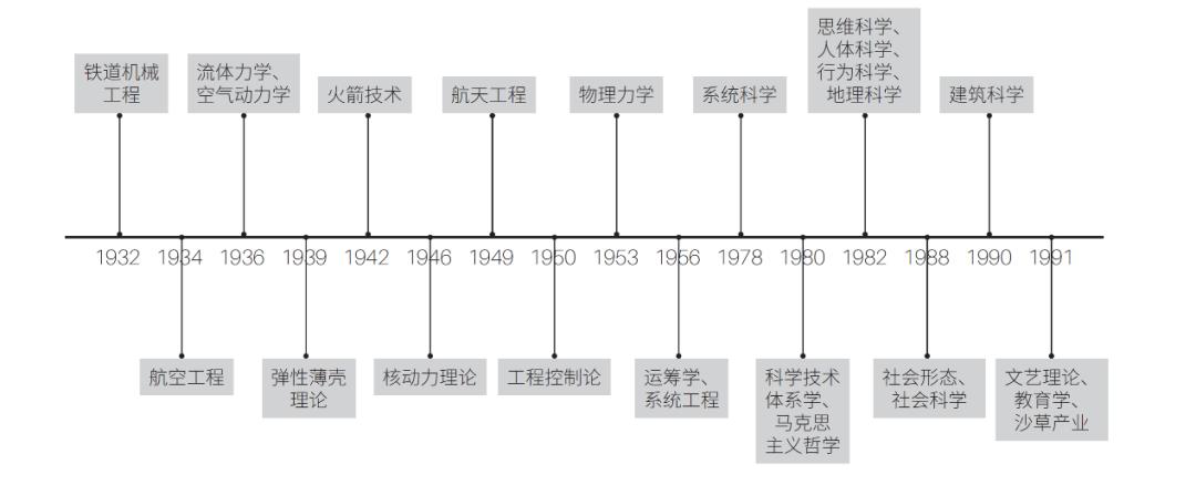 图 1 资料来源:朱岩梅梅,钱学森涉足的主要学科领域. 人才基因[M]
