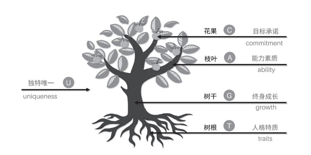 树根:人格特征(Traits)。人是具有遗传特征的动物。培养人和用人,首先要懂得禀赋,尊重自然。同时,人的价值观、思维模式、性格、格局是一个人能否取得长远成就的主要原因。