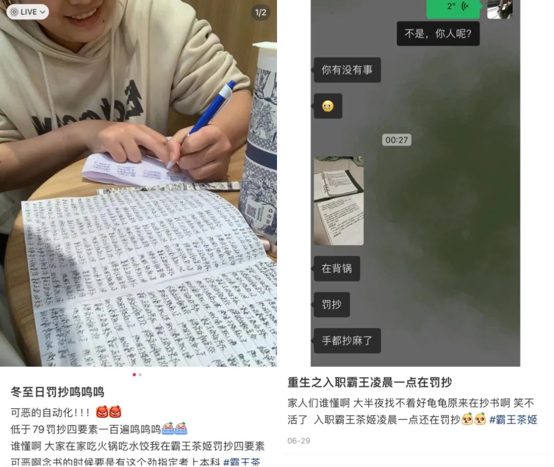 也有员工因贴错标签被罚抄100遍产品名称“伯牙绝弦”。有些人因为忘记打卡而被罚抄100遍“工作不打卡,一天工作不打卡”,或者因为错误操作被罚抄。