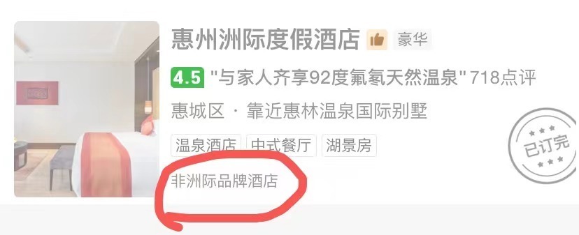21日下午,记者再次查看了OTA(在线旅游)平台,该酒店已经显示为“非洲际品牌酒店”。