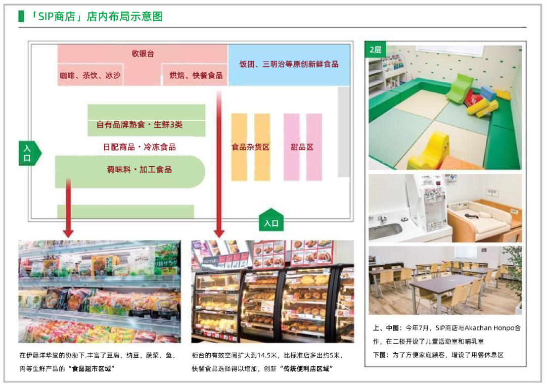 今年7月,SIP商店二楼设立了22个座位的用餐区,适合家庭休息。与此同时,通过与Akachan Honpo合作,还建立了哺乳室和儿童游戏区,进一步提高了商店的便利性。