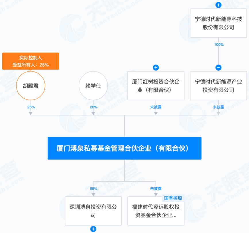 据悉,时代泽远基金的执行合伙人和基金经理是厦门溥泉,成立于2023年5月10日,并于2023年8月21日在中国证券投资基金行业协会完成私募基金经理备案登记;厦门溥泉注册资本为3000万元,宁德时代全资子公司宁德时代新能源产业投资有限公司作为有限合伙人之一,拥有厦门溥泉45%的合伙份额。