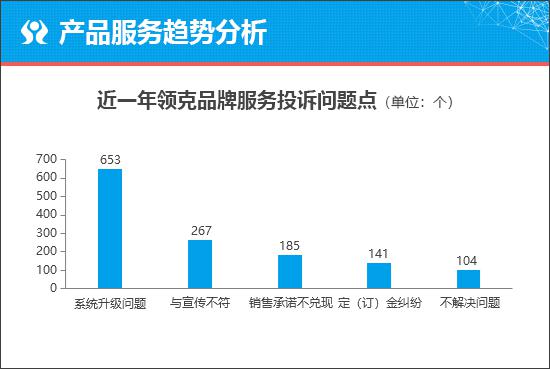 从服务投诉的角度来看,“系统更新”是一个服务问题,车主会抱怨领克品牌更多。通过进一步分析,我们可以看到这种服务问题主要集中在领克。 03、领克 05 等车型。