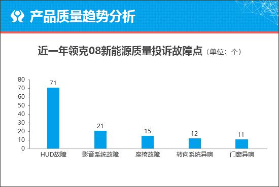 根据汽车质量网的数据,领克 08 近一年新能源投诉主要集中在“ HUD 故障"。通过进一步分析,问题主要集中在问题上。 2023 款车,后续年款车很少涉及,可见厂家已对相关故障问题进行了优化。因为领克 08 EM-P 这是一款全新的改款车型,所以可以暂时认为它出现上述问题的几率很低,具体情况如何,还要等到它使用一段时间才能得出结论。