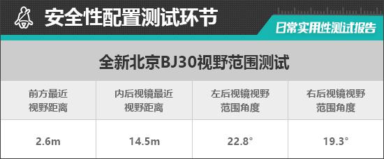 在汽车前后视线检测中,车内所有座椅均已调整到最低状态,检测到的数据与驾驶员正常使用时存在一些误差,仅供参考。