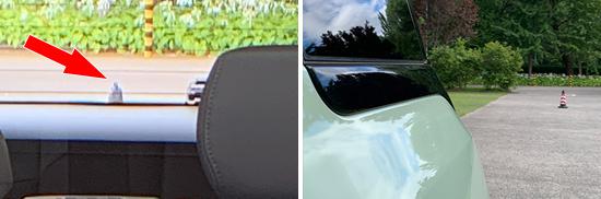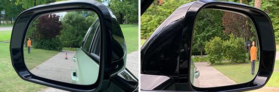 双曲率镜片没有用于评估汽车两侧的外后视镜。经实测,左外后视镜的视野范围为 22.8 °,测试结果处于同级中下游水平;右外后视镜的视野范围为 19.3 °,测试结果处于同级平均水平。