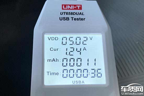另外,我们是对的 USB 测试了接口的电压和电流。其中,前排 USB Type-A 接口的电压和电流分别是 5.02V 和 1.24A。