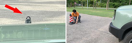我们采用高度高度来测试前方视野阶段。 70cm 以桩桶为参考,然后调整车距,直到主驾驶座可以看到桩桶的上缘。经过测试,桩桶和车前最后测量的数据是 2.6m,达到同级中上游水平。