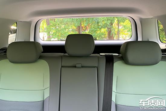 评估车后座配有三个头枕,支持上下调节。虽然中间头枕的尺寸略小,但也能为后排乘客的头部提供足够的支撑。三个头枕的填充物比较柔软,保证了舒适的乘坐体验。