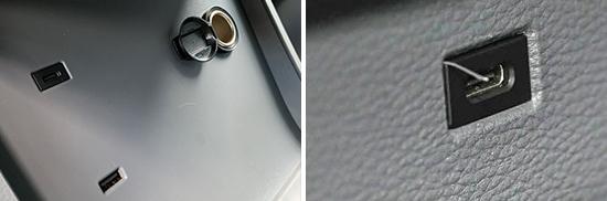 评测车配置 2 个 USB Type-C 接口和 1 个 USB Type-A 接口。其中,前排 1 个 USB Type-C 接口和 1 个 USB Type-A 接口位于前排中控台下的储物槽内,后排在后排。 1 个 USB Type-C 接口位于空调风口下方,接口布局合理,兼容性好。另外,前排中控台下的储物槽和后备箱内部分别提供 1 个 12V 电源接口。